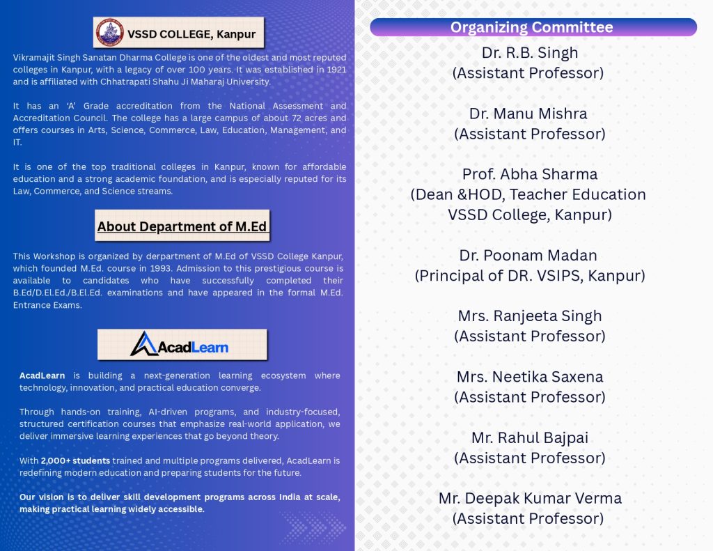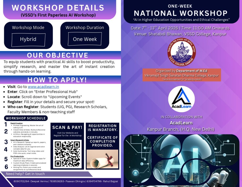 VSSD College and AcadLearn are hosting a National Workshop to help you master Artificial Intelligence.